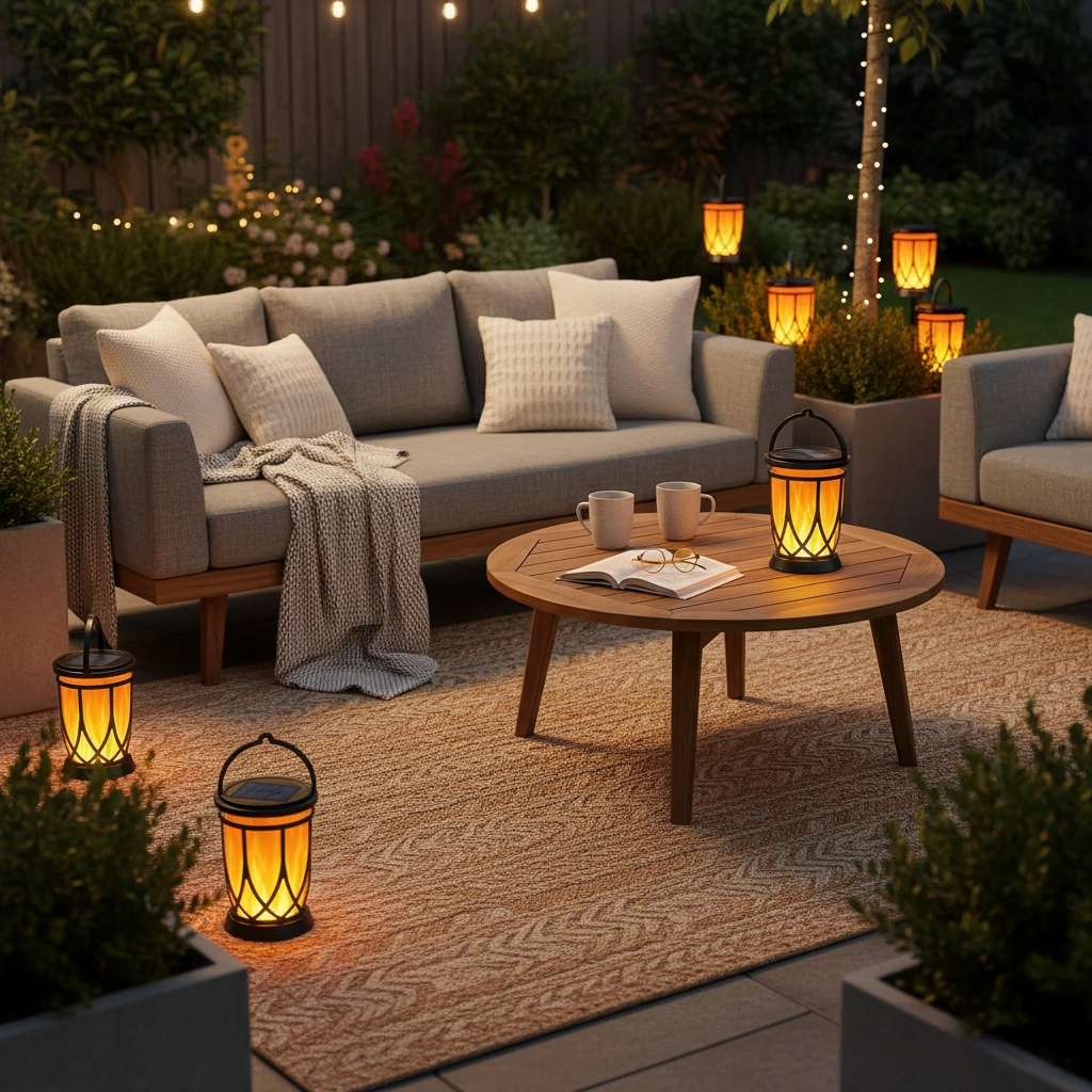 Turn your garden into a warm and welcoming sanctuary with softly glowing flame lanterns. Perfect for reading, relaxing, or enjoying quiet conversations, these lights bring a calming, candle-like ambiance to your outdoor lounge space—beautiful, peaceful, and effortlessly inviting.